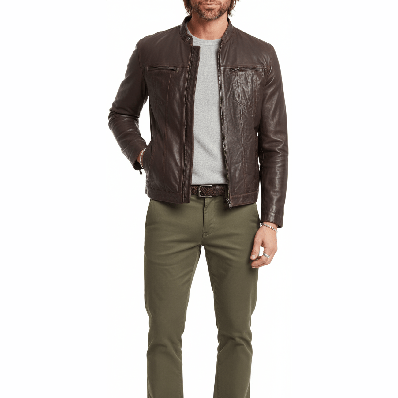 PDW Men’s Black & BROWN Lambskin Leather Jacket