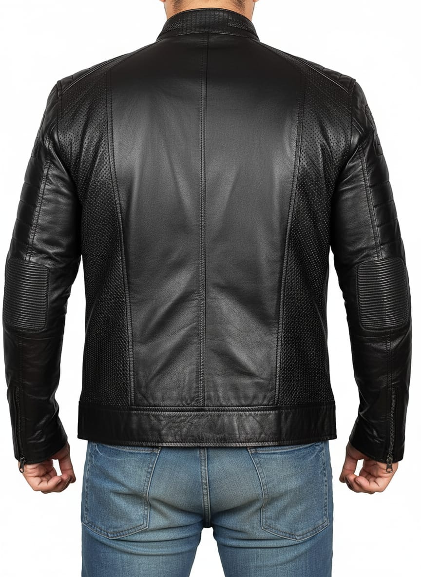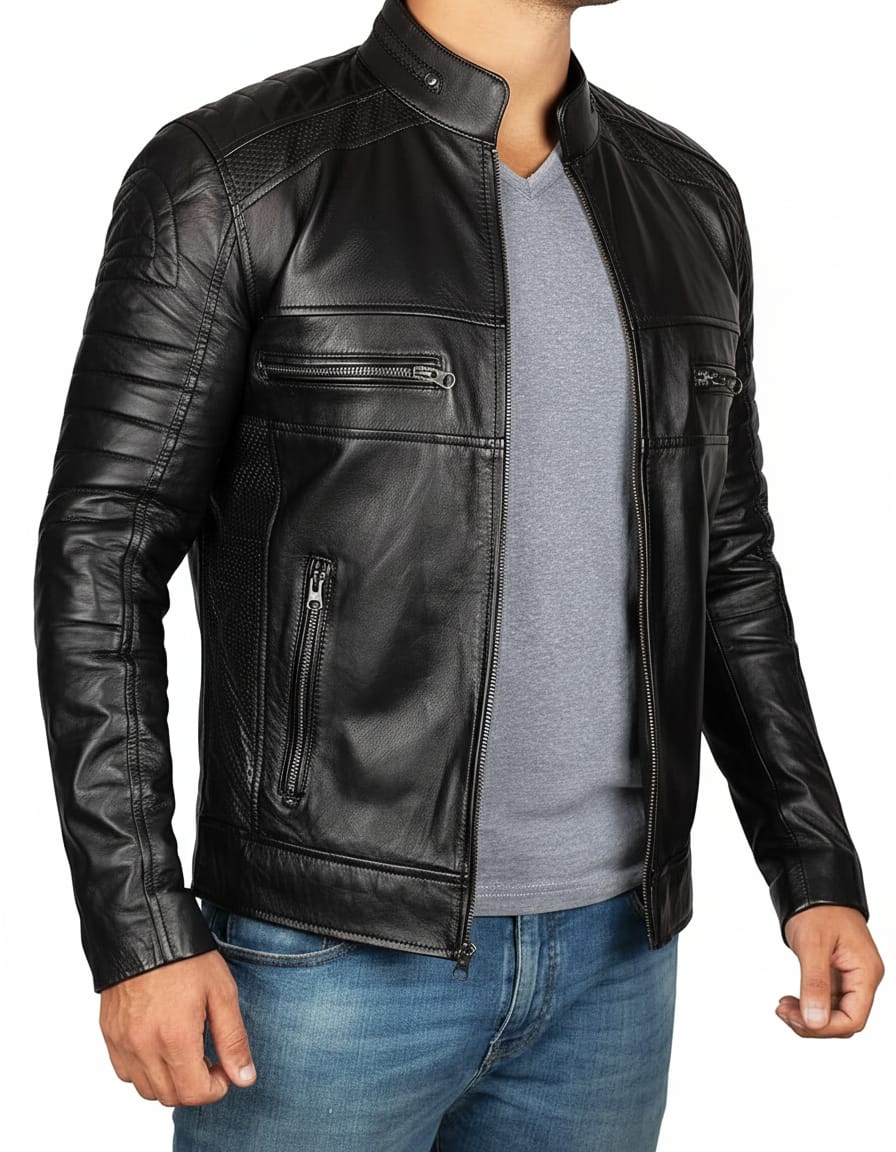 PDW Men’s Real Lambskin Leather Biker Jacket – Classic Café Racer Motorcycle Style