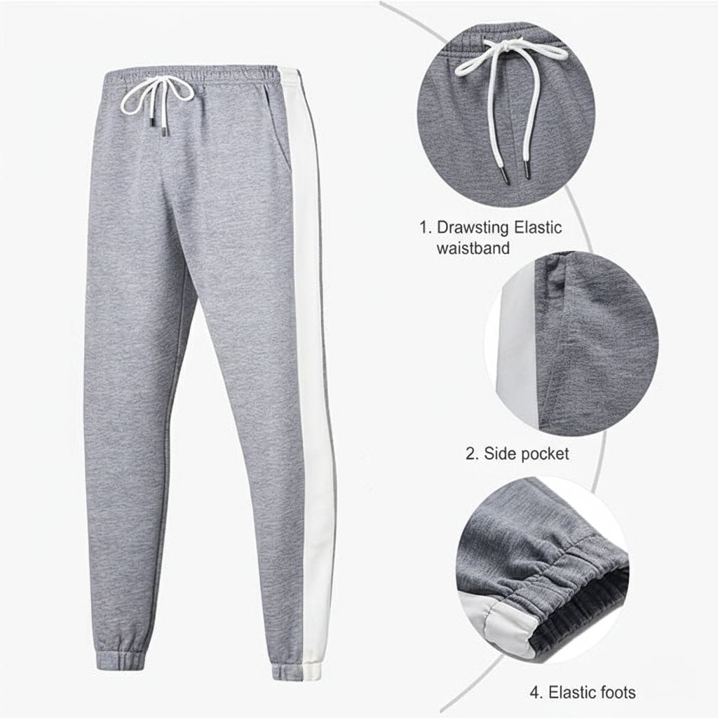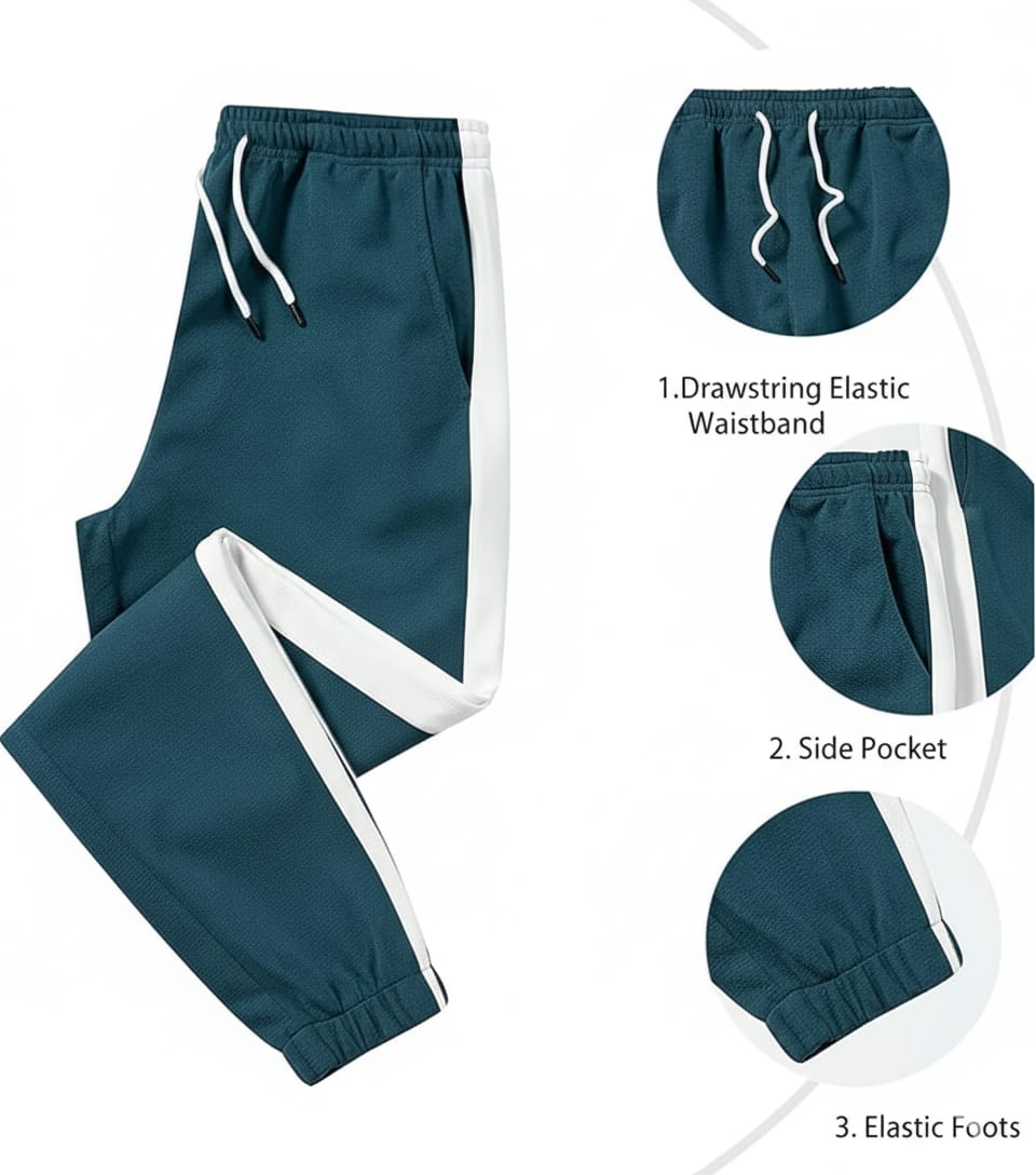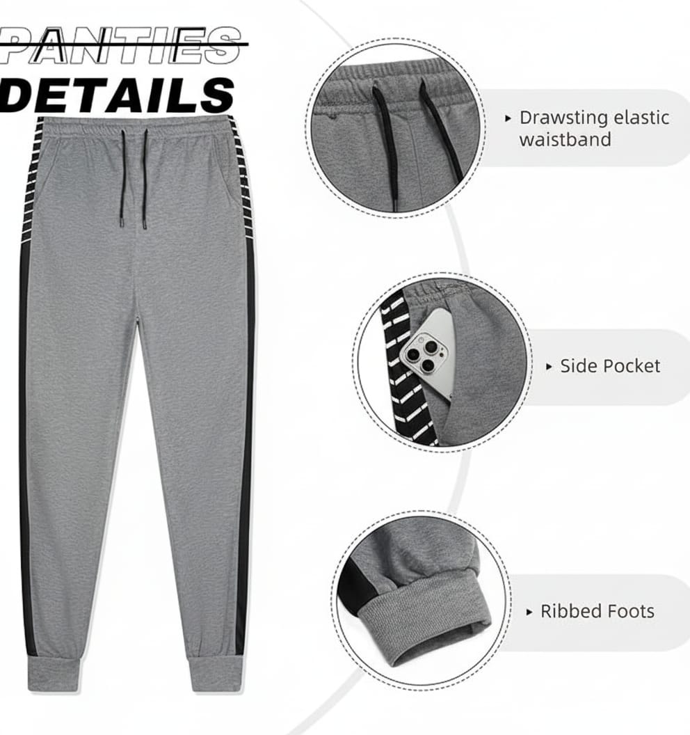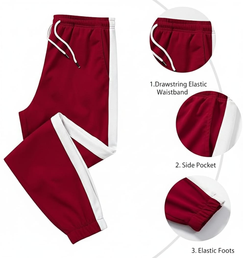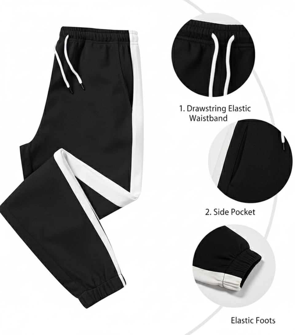 Jogger Sweatpants: Designed with an adjustable drawstring waistband, two slant pockets, and contrast color side stripes for a stylish athletic edge. The ankle-banded design ensures a perfect fit.