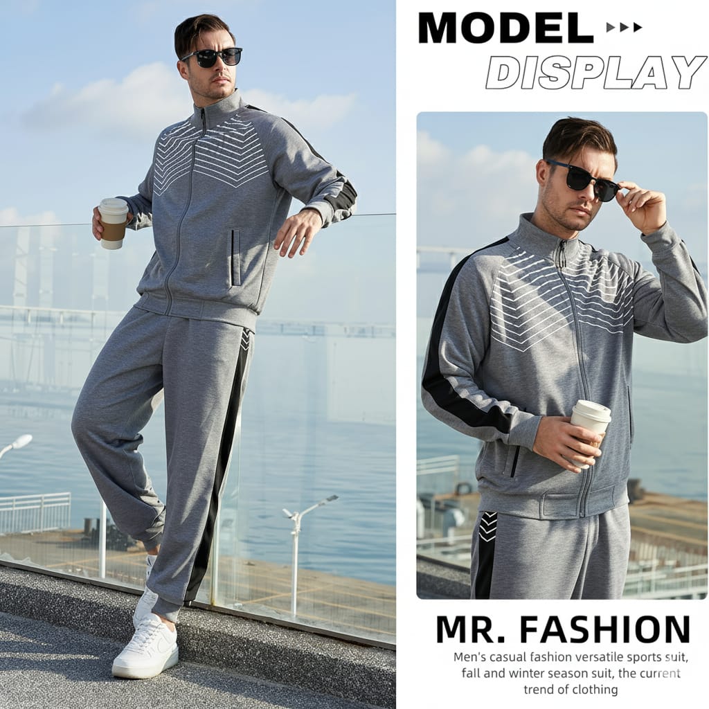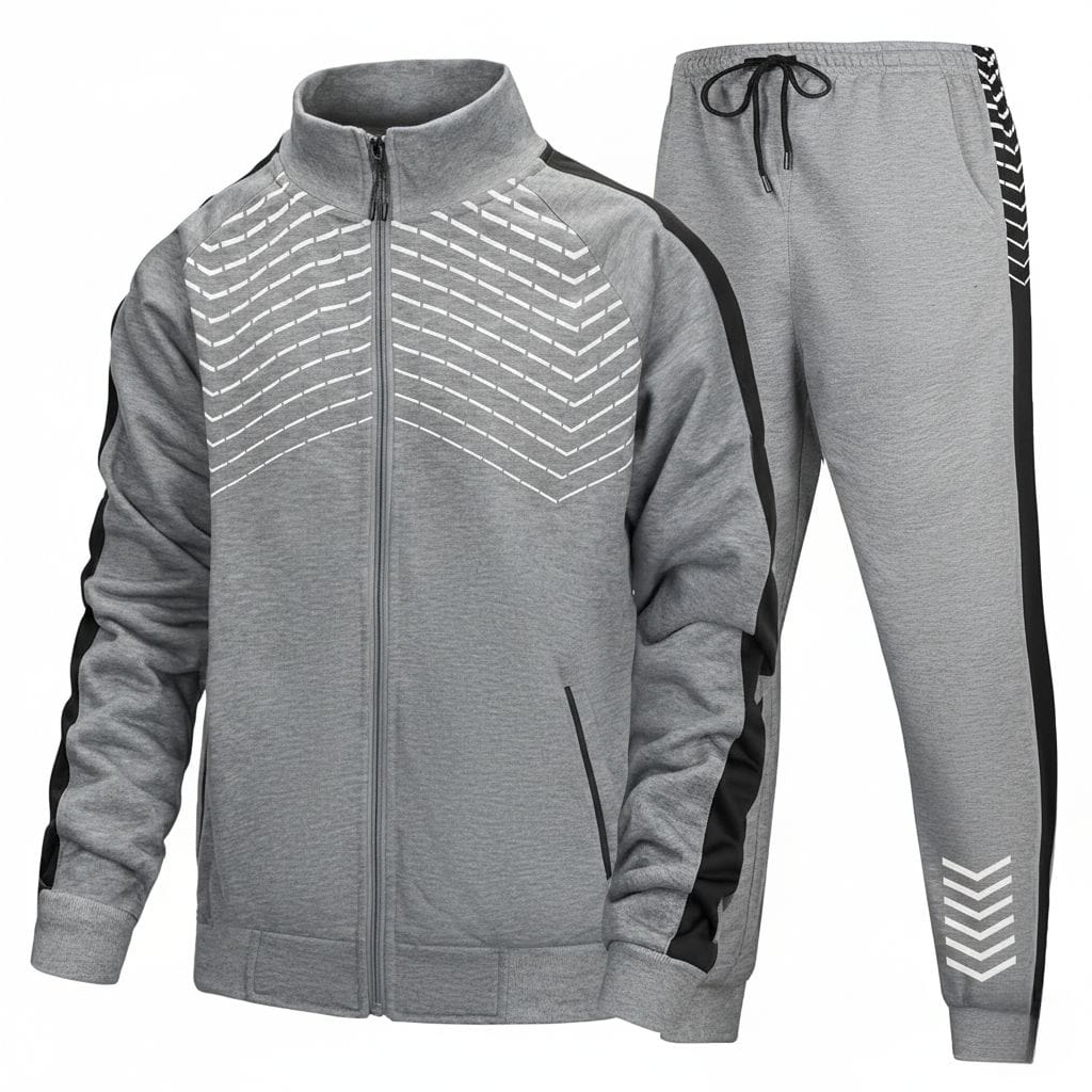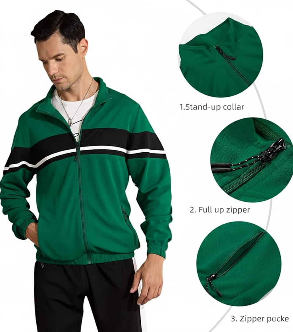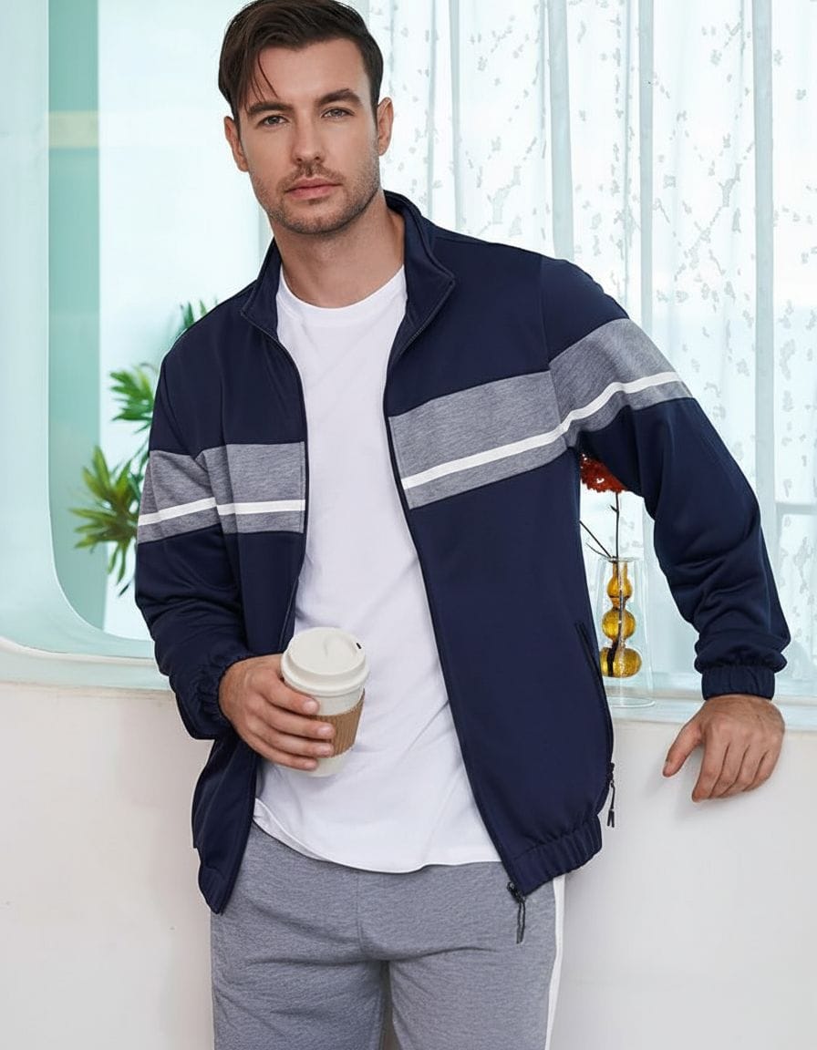 Sweatsuit Jacket: Full-zip front with 2 secure zipper pockets, warmth-locking ribbed cuffs, and a fitted hem for a clean, sporty look.